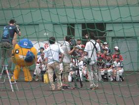キャッチボールをしたり、走塁の練習をしたり、最後には「ガンちゃん」自ら投球